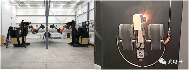 图2 ARLCRS系统对F16战机进行激光除漆 激光清洗爬壁机器人最后梳理了近年来研究人员在激光清洗系统优化方面所取得的一些关键性技术突破:①激光复合清洗:当前的激光清洗系统大多采用单一激光束进行加工 (连续或脉冲),而在面对一些较厚的污染层时,单一激光清洗往往会暴露出各自的缺陷。通过复合利用连续激光高效率和脉冲激光高精度的特点,可以在提高激光清洗效率的同时保证表面质量。